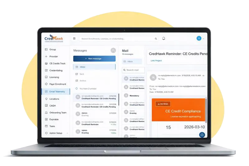 Credentialing teams spend hours chasing documents, signatures, and follow-ups through endless email threads, with no centralized history or visibility.